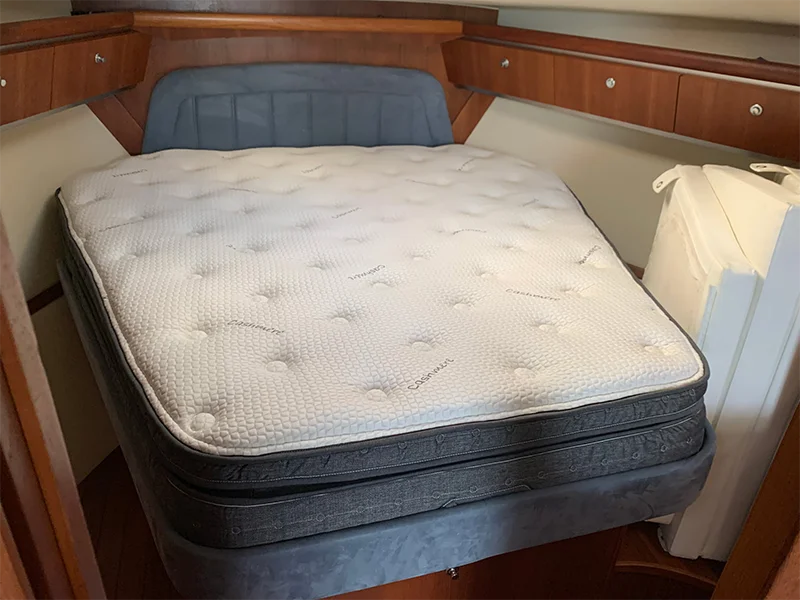 Dreaming of a new bed on your boat so you can overnight more often? Now you can! Our custom Handcraft Mattress Company bed is made specifically to your boat’s berth, size and shape with all the same comforts as your home bed! Contact us today so you’re ready for your next boating adventure!