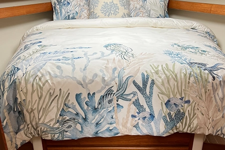 Handcraft Mattress Company is proud to offer a wide range of the finest linens options available, including custom-made luxury designer linens hand-crafted and tailored to fit your custom boat mattress of any size, any shape. We have a full line of Sheets, Mattress Pad Protectors, Coverlets/Duvets, Towels, and Pillows to choose from to create the perfect customized ensemble for your boat!